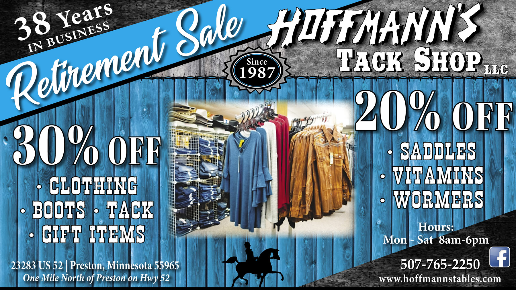 Here in Preston, Minnesota, stores that do it all are few and far between. That’s why we’re proud to offer just about anything the community needs for their horses, their closets, or their stables. From Western and English clothing and equipment to boots and clothing for the entire family (not just horse owners!), anything you need, we’re proud to help you find it.